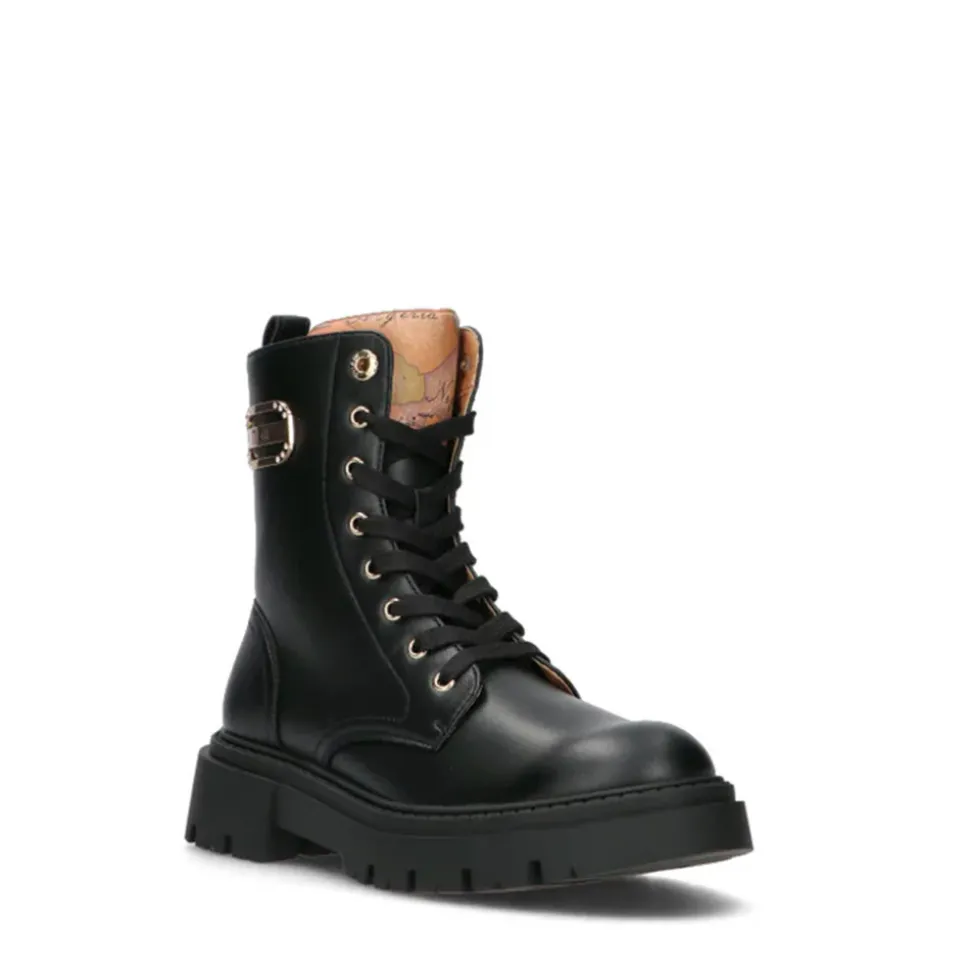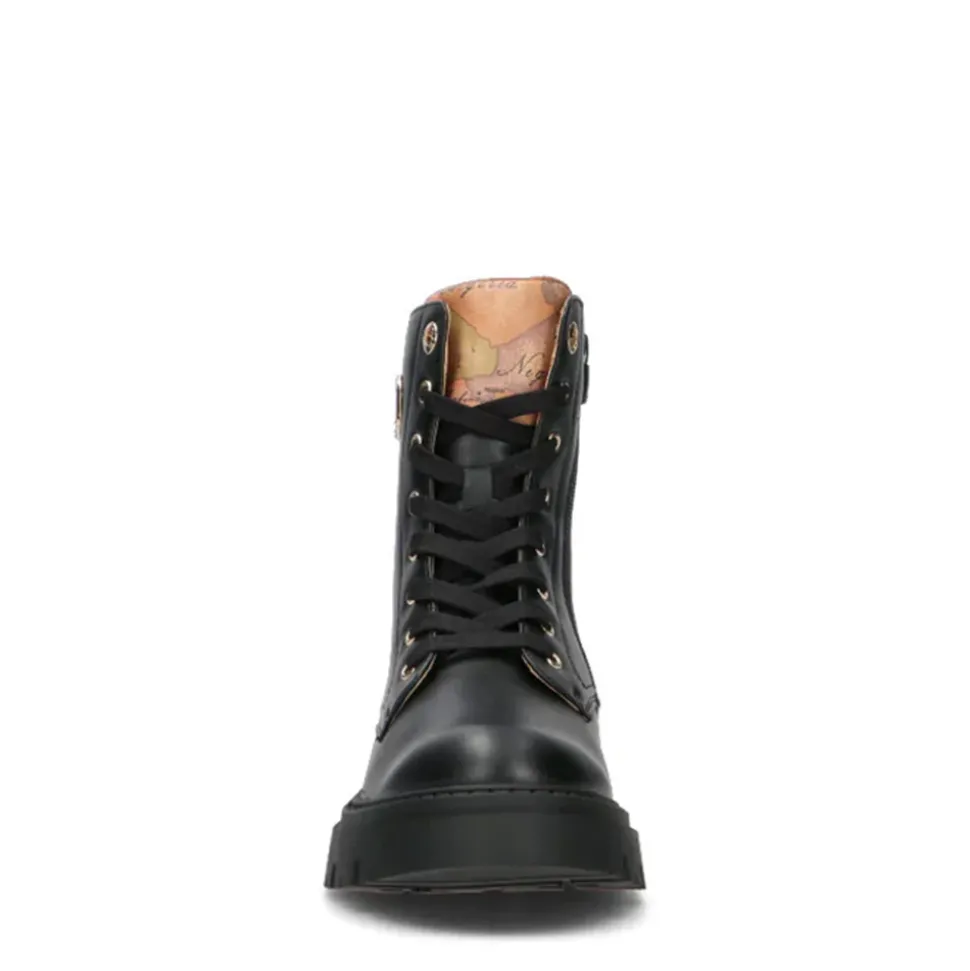 Anfibi in ecopelle con linguetta stampa Geo Classic. Targhetta logata 1A Classe laterale. Comodi e grintosi, sono l’ideale per completare i look urban con un’impronta femminile e originale.