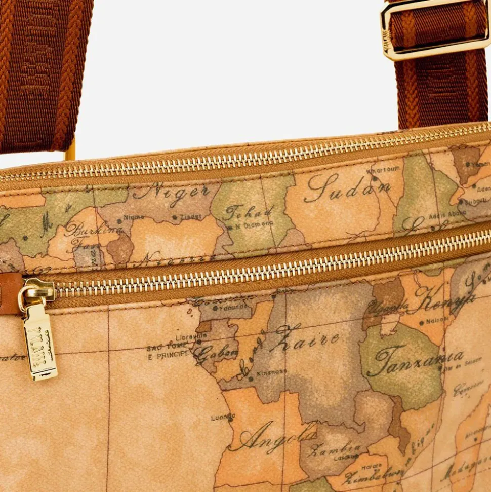 Bandoliera unisex in tessuto stampato con cartina geografica Geo Classic, con tracolla regolabile in nastro con logo 1AClasse, tasca frontale con zip, chiusura con zip. Un accessorio capiente e imperdibile per completare i tuoi look casual.