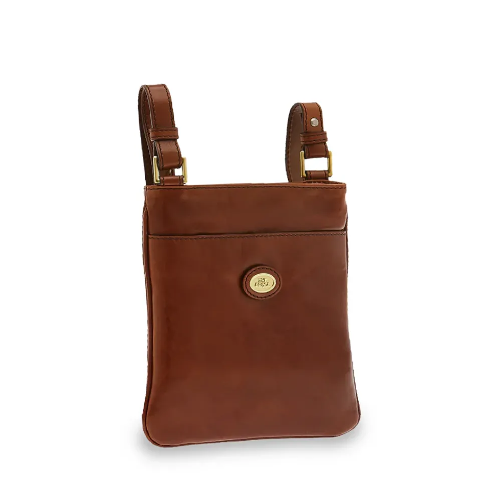 Bandoliera a tracolla The Bridge linea Story in pelle marrone. Made in Italy.
