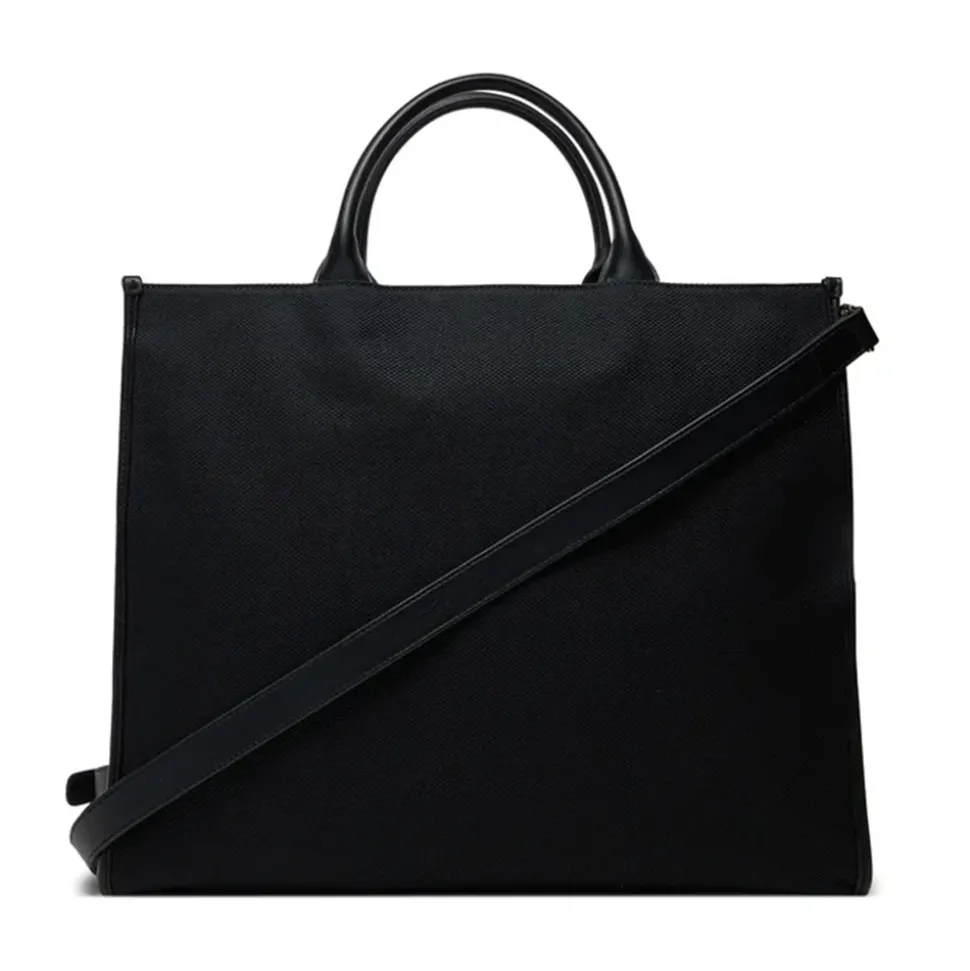 Borsa in canvas chiusa con zip. Logo Lettering ricamato sul davanti. Tracolla regolabile e removibile.