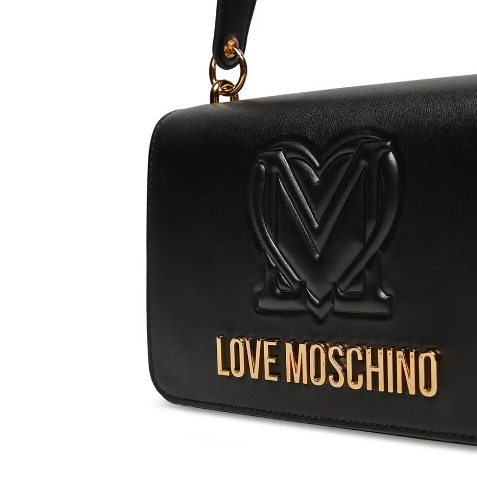 Borsa a spalla con tracolla Love Moschino in pelle nera.