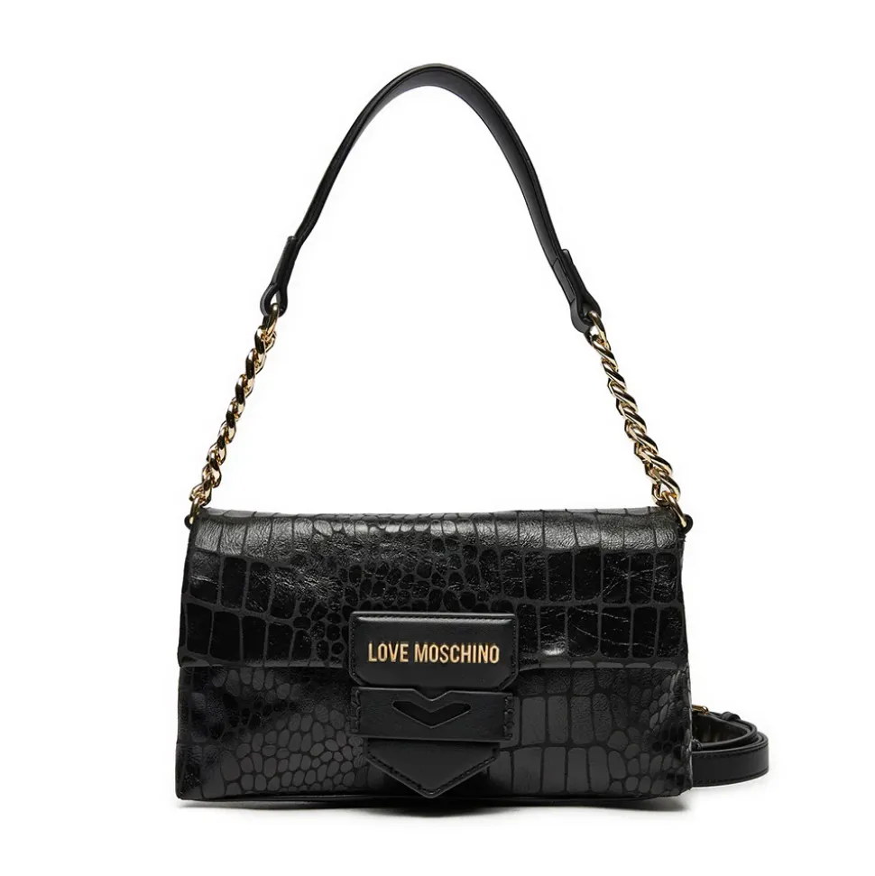 Borsa a spalla Love Moschino in ecopelle stampa cocco nera.