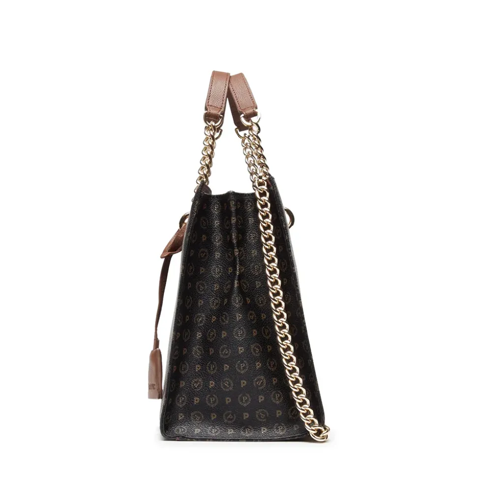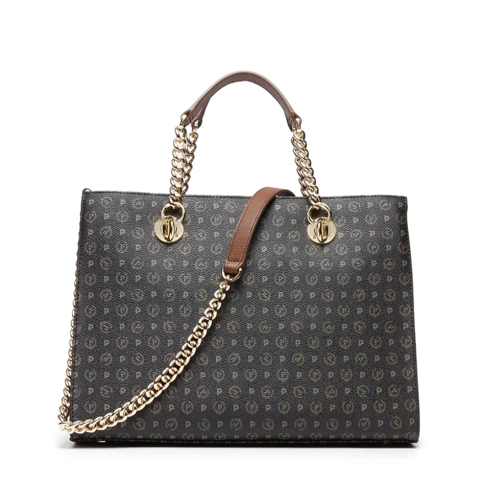 Pratica borsa shopping collezione Heritage Logo Classic. L’iconico monogramma all over dona un allure elegante e senza tempo. Doppio manico tubolare e tracolla in catena amovibile.