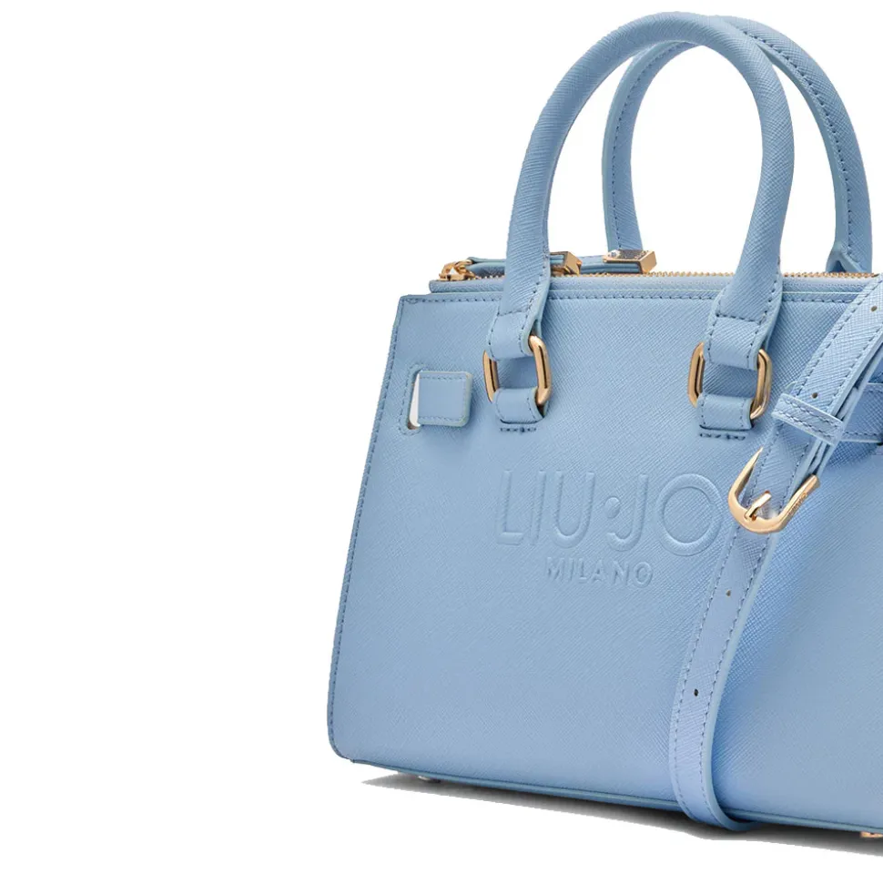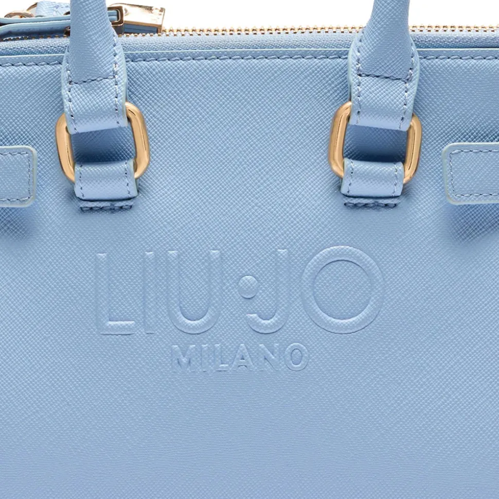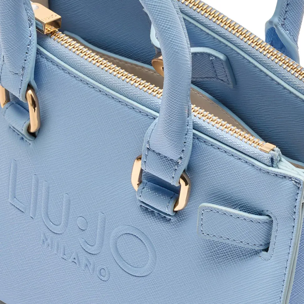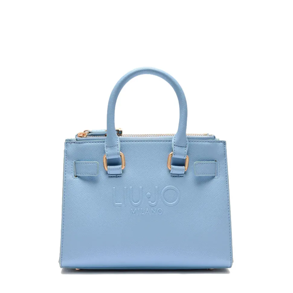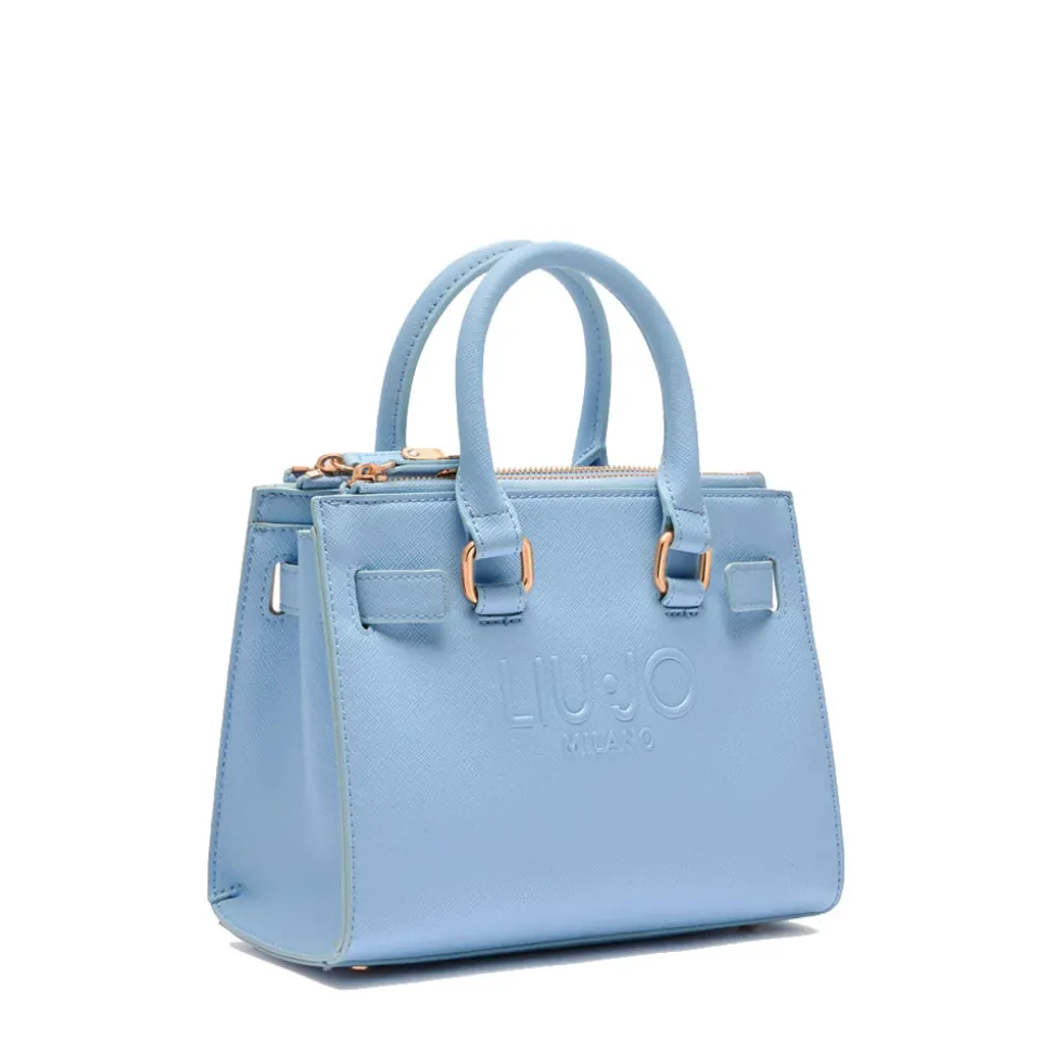 Borsa a mano in ecopelle divisa in tre scomparti, due chiusi con zip e uno con clip. Logo in rilievo sul davanti. Comodi manici. Tracolla regolabile e rimovibile.