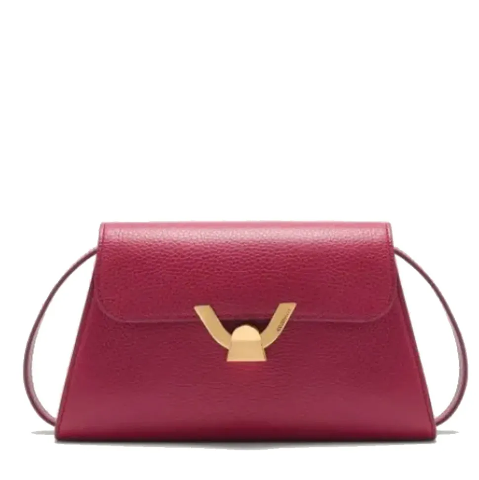 L’immancabile borsa a spalla della linea Coccinelle Dew, dal design strutturato ma con un twist raffinato. Nelle linee curve e femminili ritroviamo i tratti distintivi del brand, mentre la novità è la chiusura ad incastro caratterizzata da un gioco di sovrapposizioni dell’iconico plettro. Questo modello è realizzato in pelle lavorata tramite specifici macchinari e poi bottalata al fine di mantenerne la morbidezza. È una pelle molto resistente che si presta a una facile pulizia, ideale per un uso quotidiano.