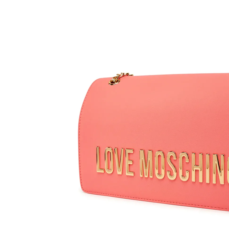 Borsa a spalle a tracolla Love Moschino linea Bold Bag color corallo.