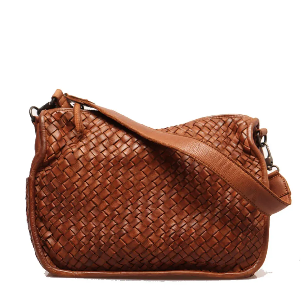 Borsa a spalla e tracolla Gianni Conti in pelle intrecciata tan.