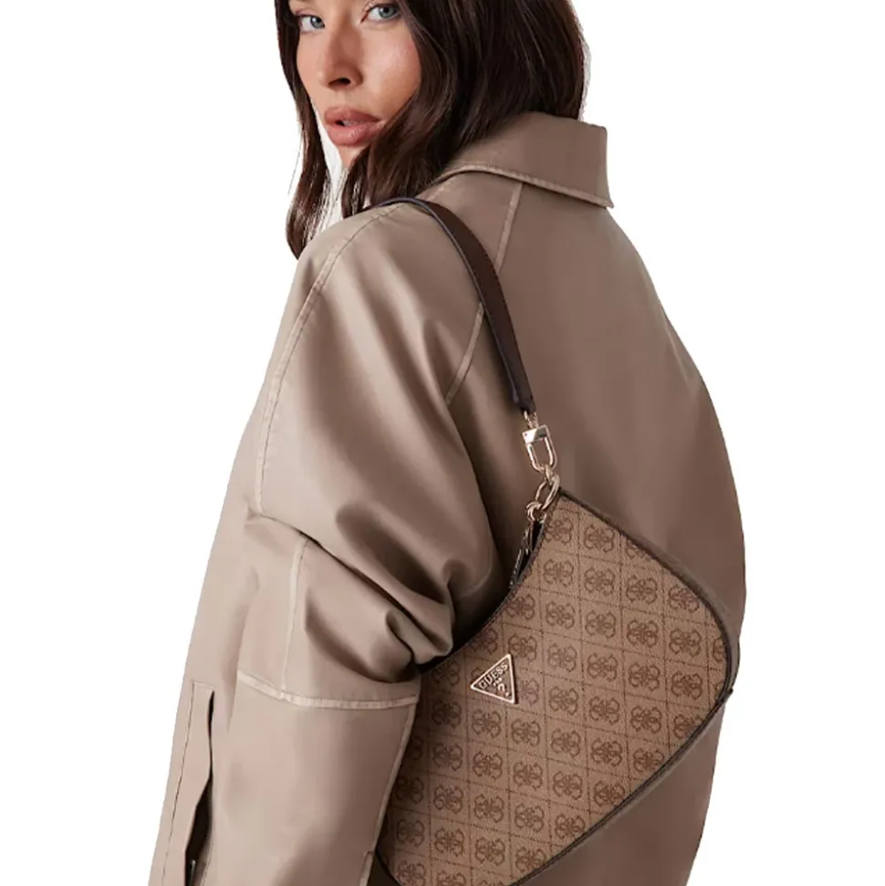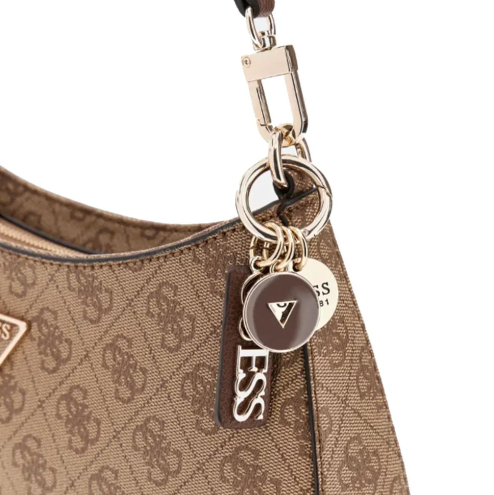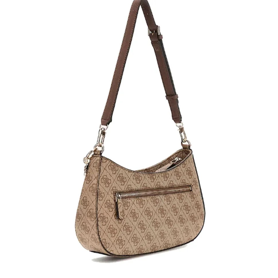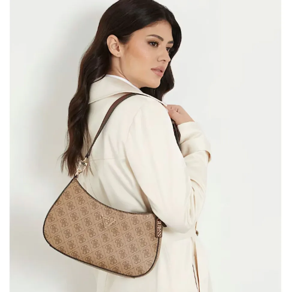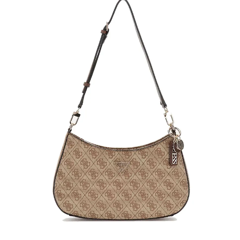 Borsa a spalla donna Guess linea Noelle colore latte logo/brown.