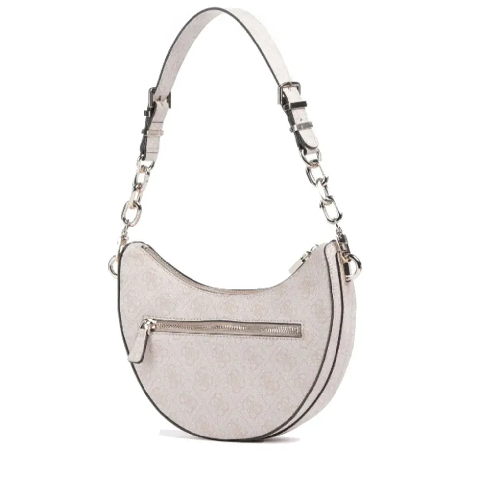 Borsa a spalla composta da un unico scomparto chiuso con zip. Interno foderato e organizzato con tasche multi funzione interne. Logo Guess in metallo sul davanti.