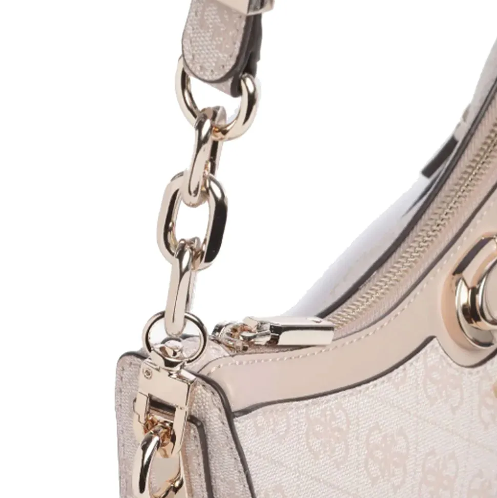 Borsa donna a spalla Guess linea Orlina colore sand logo.