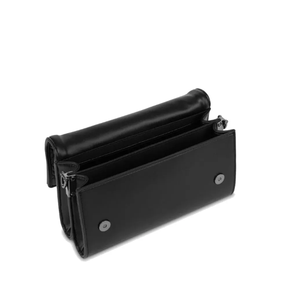Borsa a spalla in ecopelle effetto trapuntato chiusa con pattina. Logo Lettering applicato sul davanti. Logo LM trapuntato sul dietro. Manico in catena removibile.