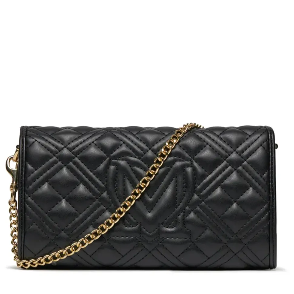 Borsa a spalla trapuntata Love Moschino linea Quilted Tab nero.