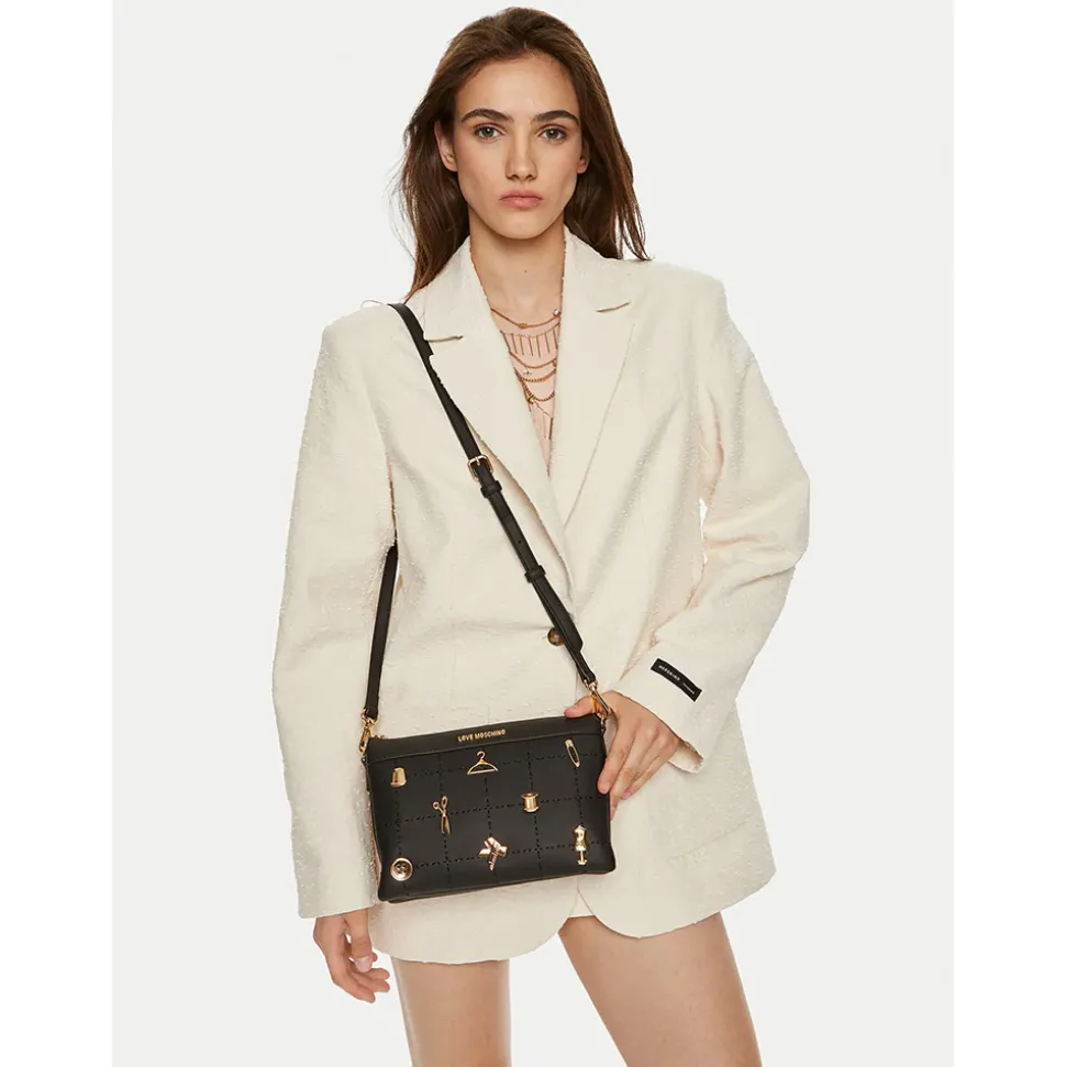 Borsa a spalla Love Moschino linea Tailoring nera.