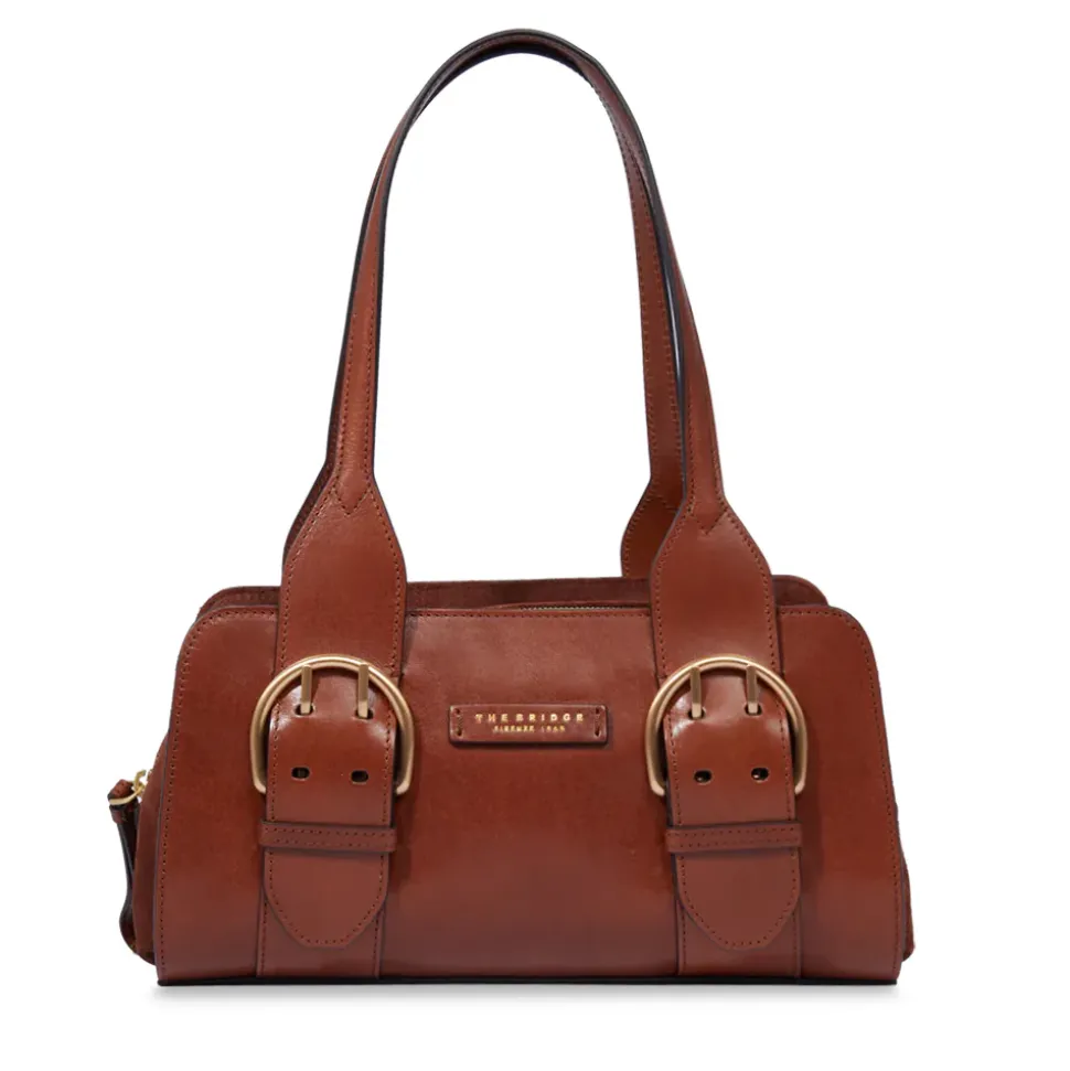 Borsa a spalla The Bridge in pelle marrone linea Elena. Made in Italy.