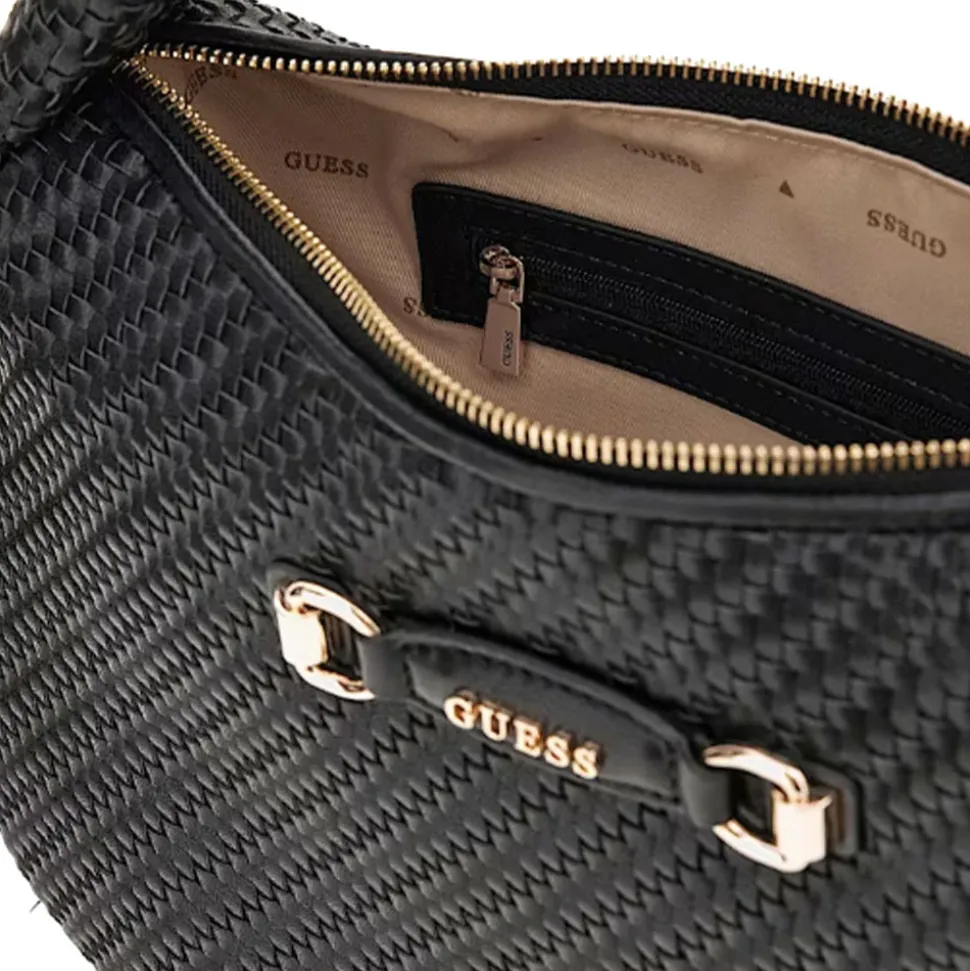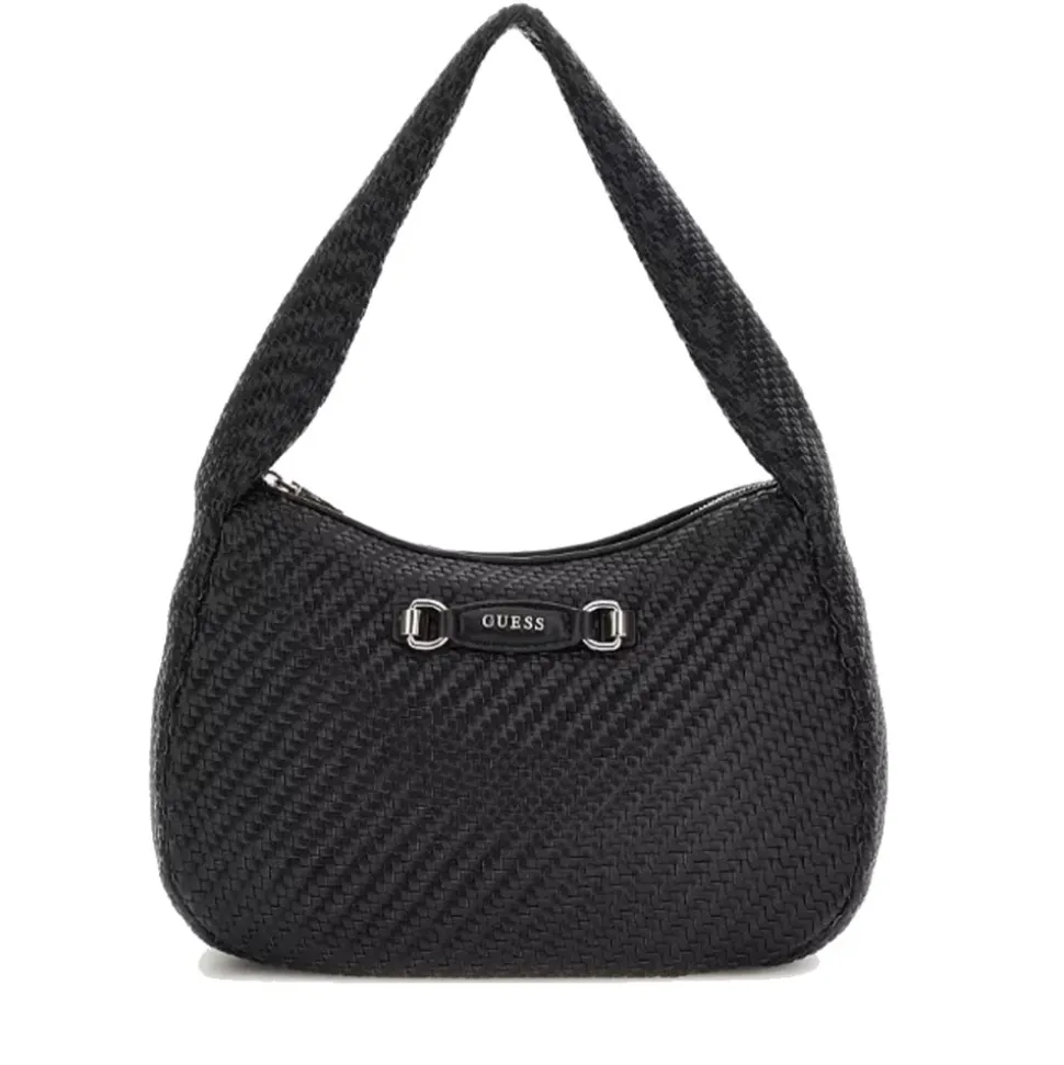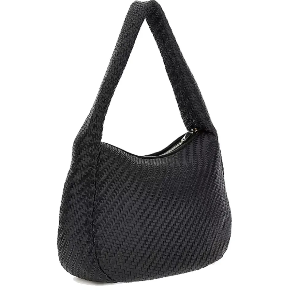 Borsa hobo a spalla in ecopelle intrecciata. Unico scomparto foderato, chiuso con zip. Dettagli metallici frontali e laterali. Logo frontale. Tasca interna chiusa con cerniera lampo.