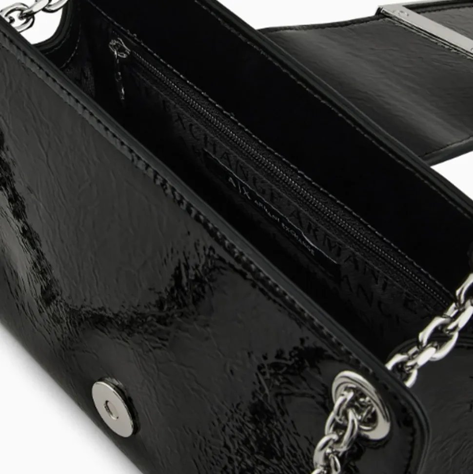 Cool ma anche pratica allo stesso tempo, questa borsa di dimensioni ridotte sarà la tua inseparabile compagna. Realizzata in ecopelle lucida con effetto vernice è caratterizzata dalla tracolla in metallo con inserto a contrasto, dal logo frontale, dalla chiusura con pattina e clip e dalla tasca interna con zip.