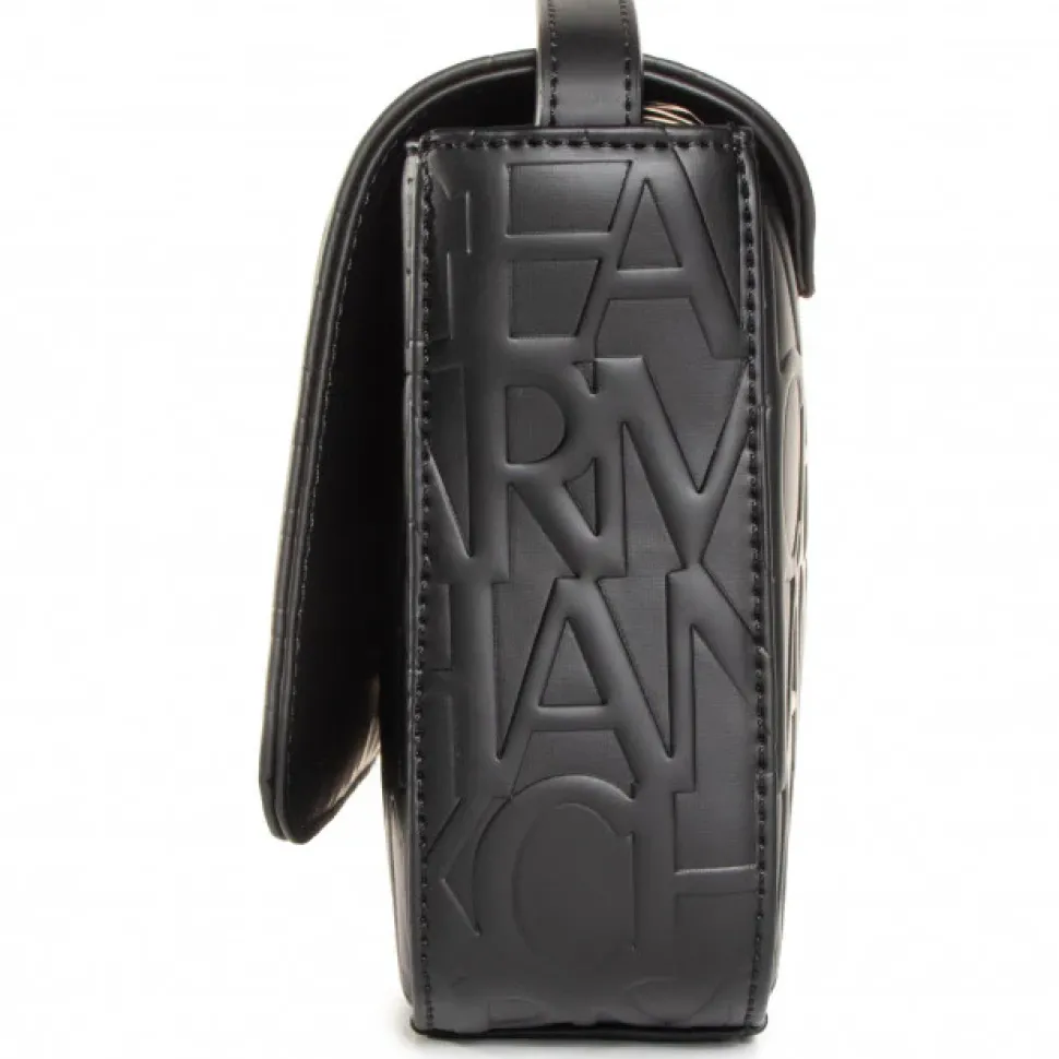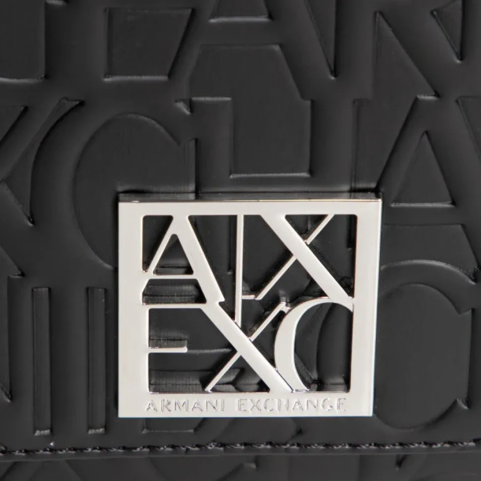 Borsa donna piccola a tracolla in ecopelle nera con fibbia argento Armani Exchange.