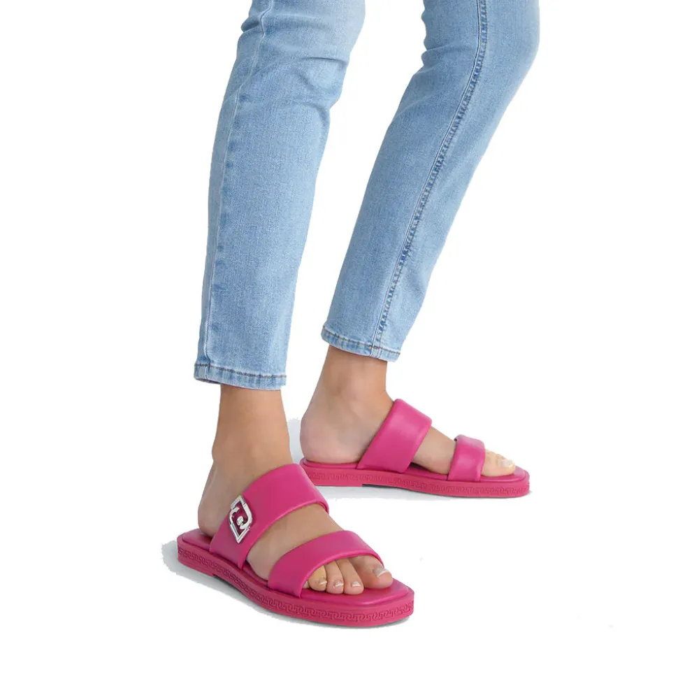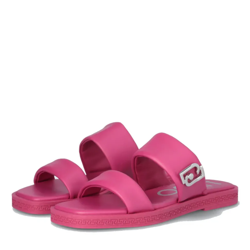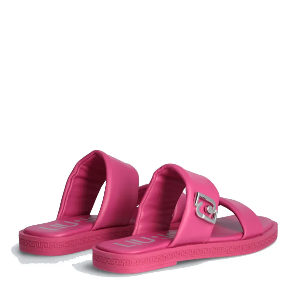 Sandali flat con fascette bold in nappa. Logo LJ applicato. Profilo suola con monogram LJ. Made in Italy