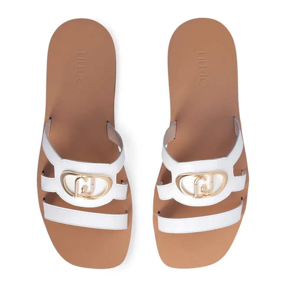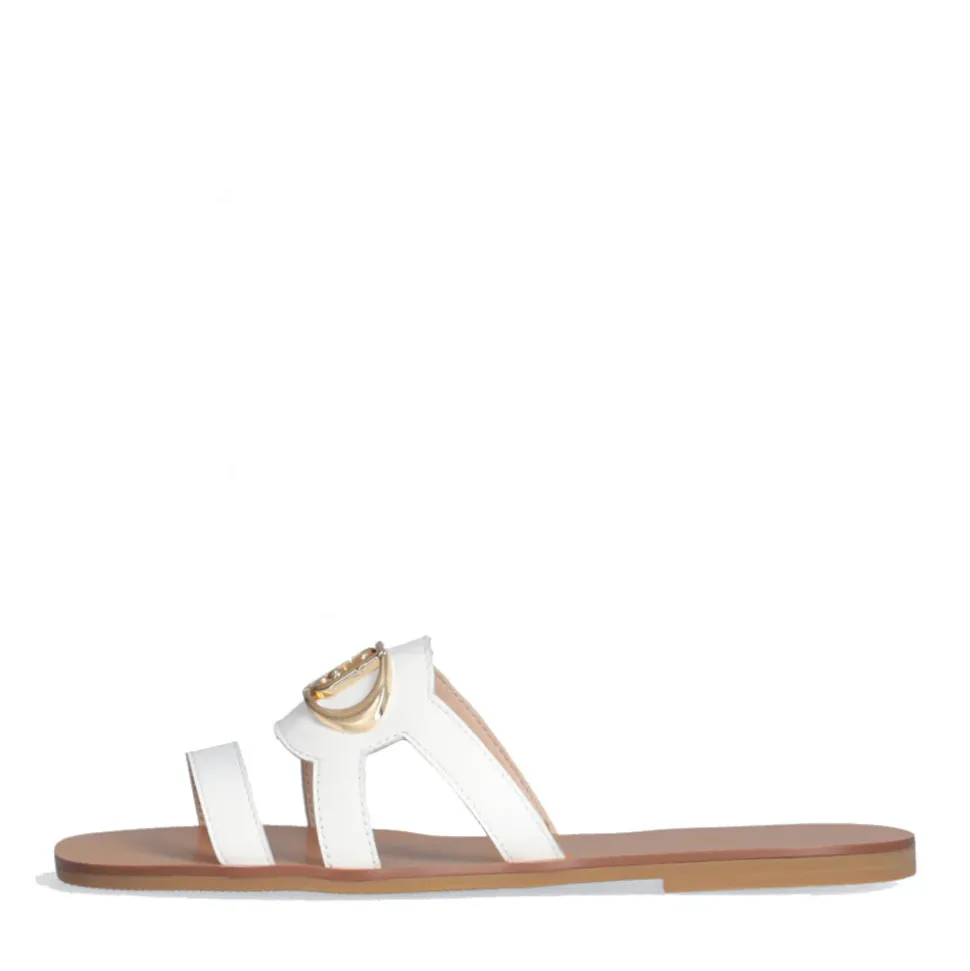 Ciabatte flat modello a tre fascette in pelle con maxi logo monogram.