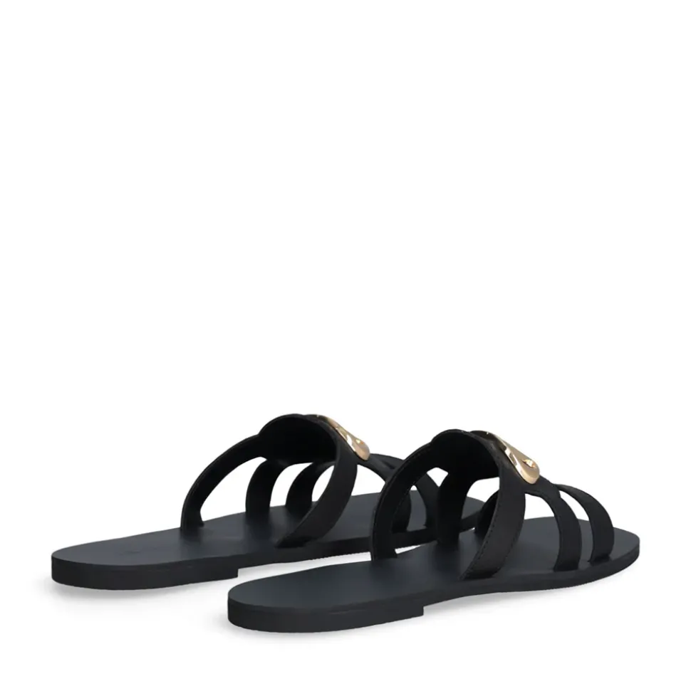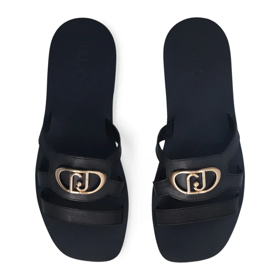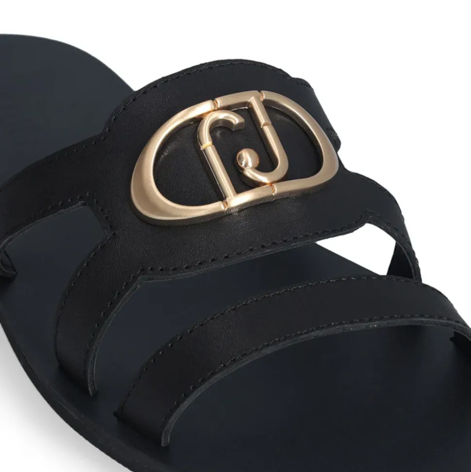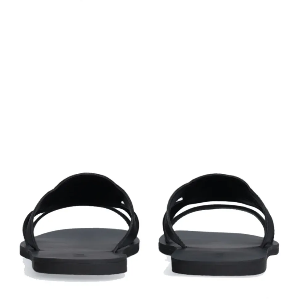 Ciabatte flat modello a tre fascette in pelle con maxi logo monogram.