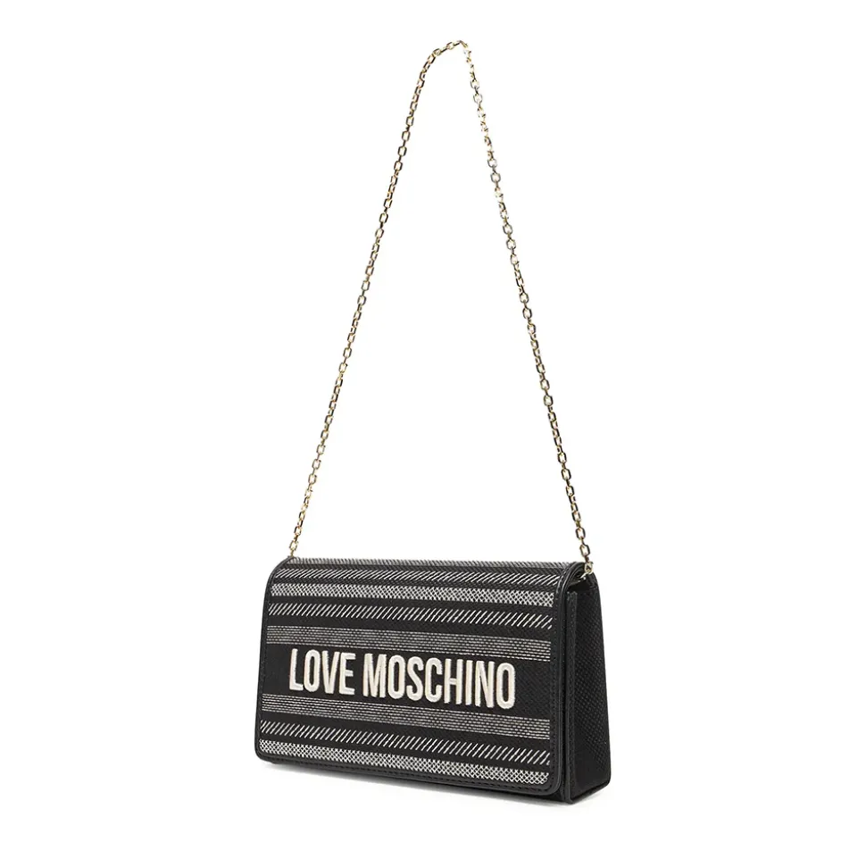Clutch in canvas chiusa con pattina e clip magnetica. Logo Lettering ricamato sul davanti. Tracolla in catena.