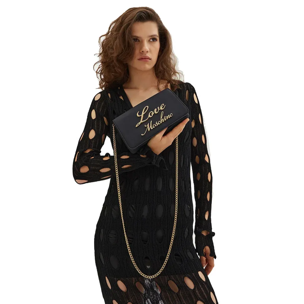 Clutch Love Moschino linea Lovely Chain colore nero.
