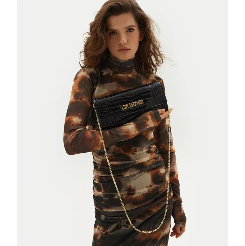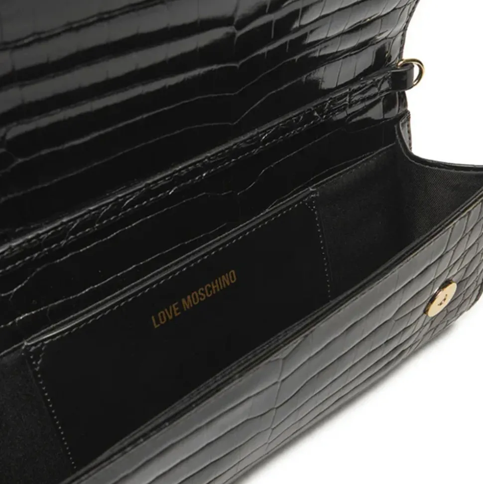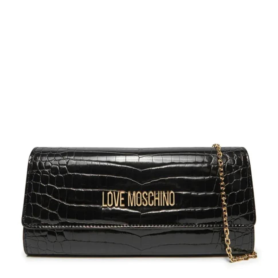 Clutch Love Moschino linea Lettering Logo nero.