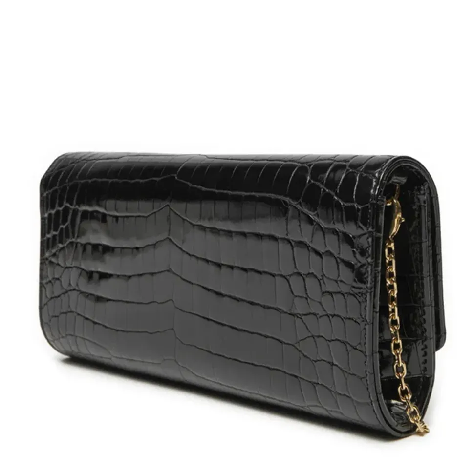 Borsa in ecopelle stampa chiusa con pattina. Logo Lettering in galvanica oro sul davanti. Tracolla a catena removibile.