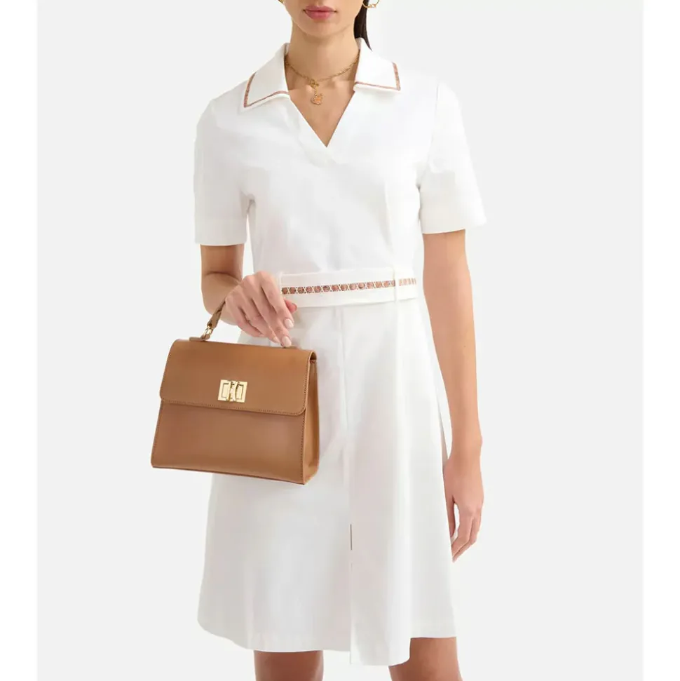 Realizzata in pelle liscia, la mini tote Elegance Coast è un modello unico in Collezione grazie alle sue molteplici portabilità: al manico in eco-nappa stampa Geo Classic si aggiunge la tracolla rimovibile, ampia nella regolazione per favorire sia l’uso sottospalla sia crossbody, più una seconda tracolla per la portabilità a zainetto. Il volume si allarga leggermente sul fondo ottimizzando la capienza ed è illuminato dalla chiusura a girello con logo 1C in oro chiaro. Un modello che unisce un’ispirazione classica alla spensieratezza della stagione estiva, rifinendo i look con un accento di pura eleganza.