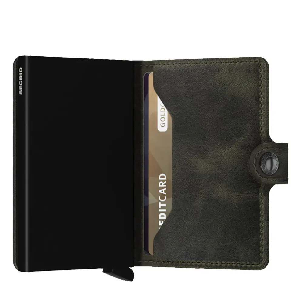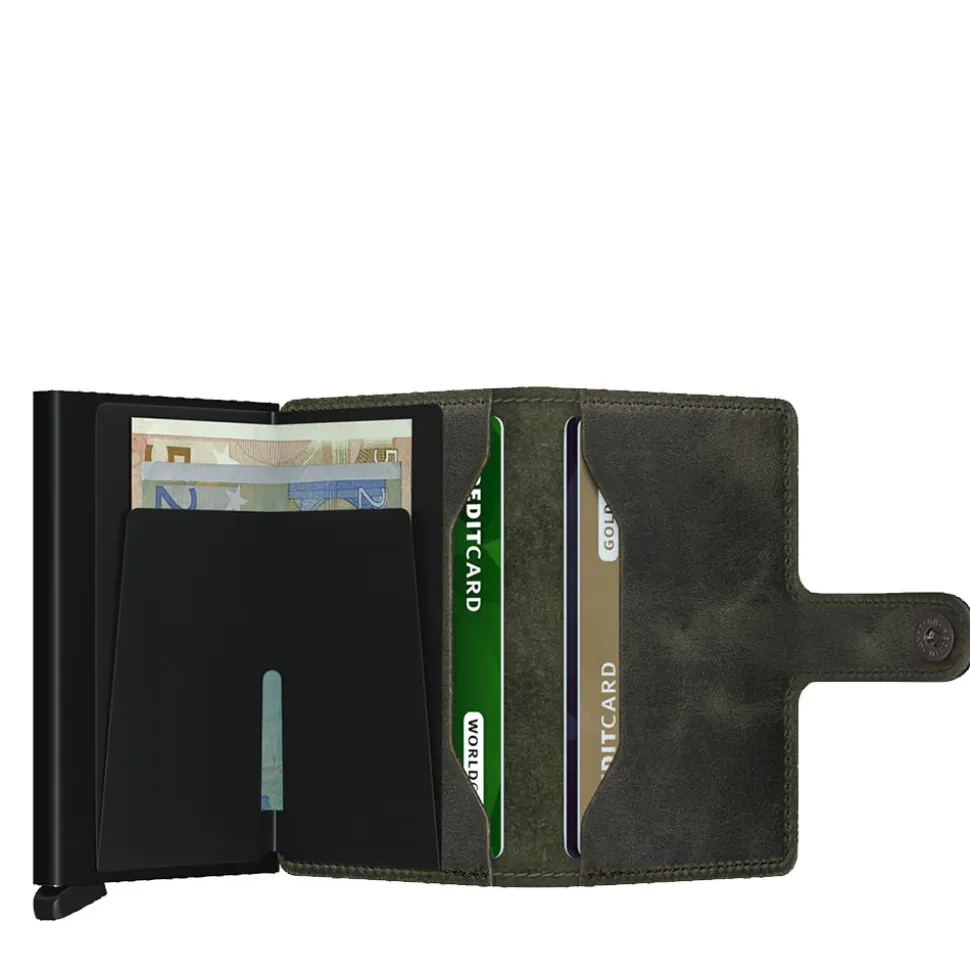 Portafoglio porta carte con sliding system Secrid linea Vintage in pelle verde e nera.