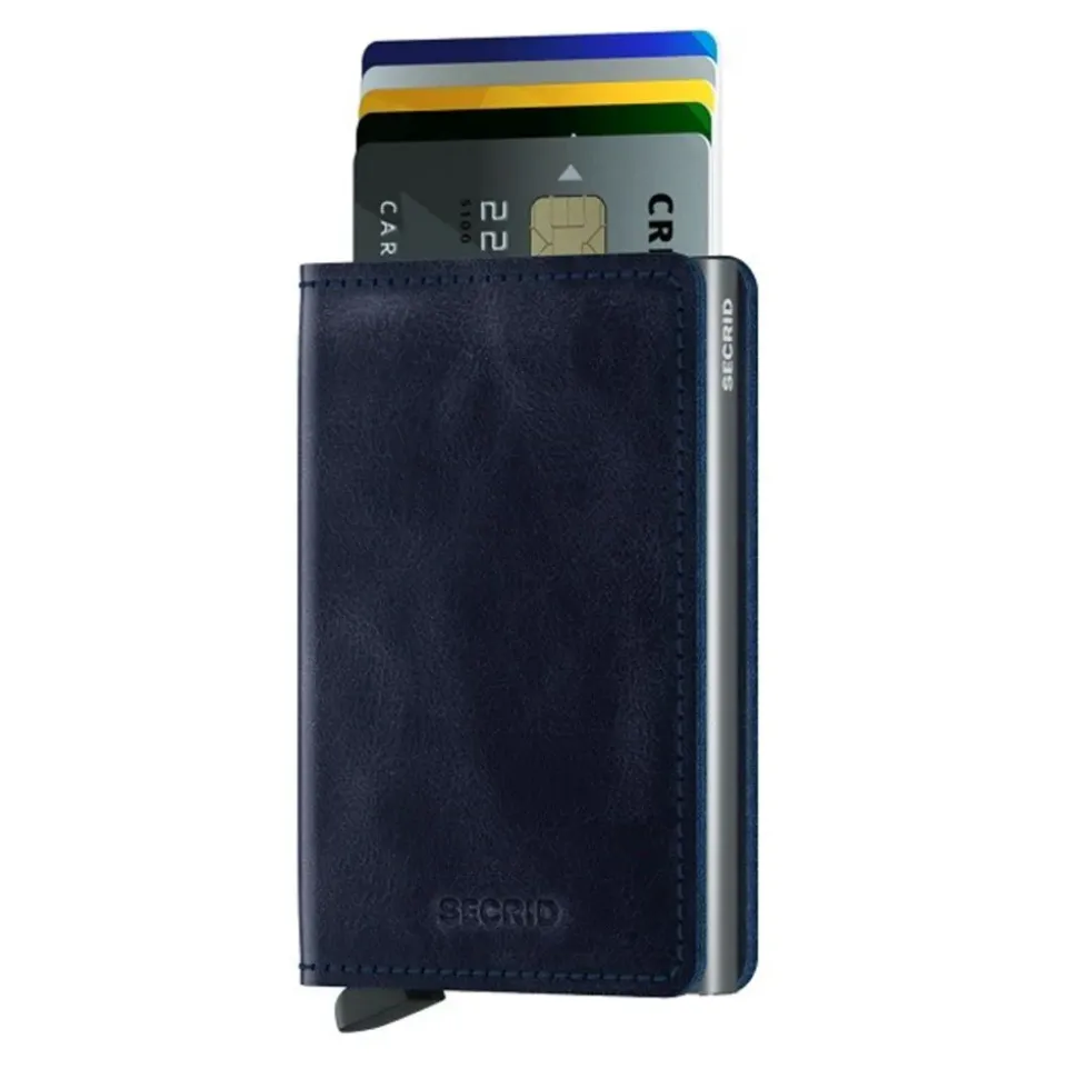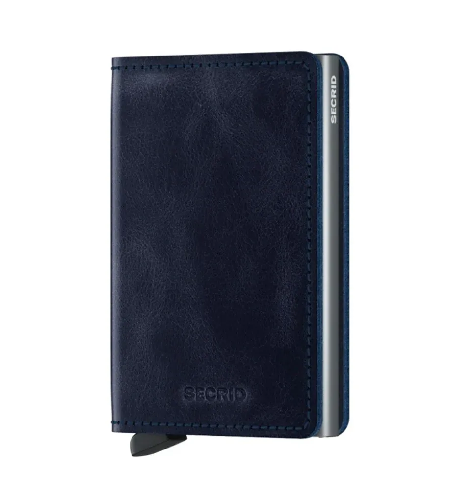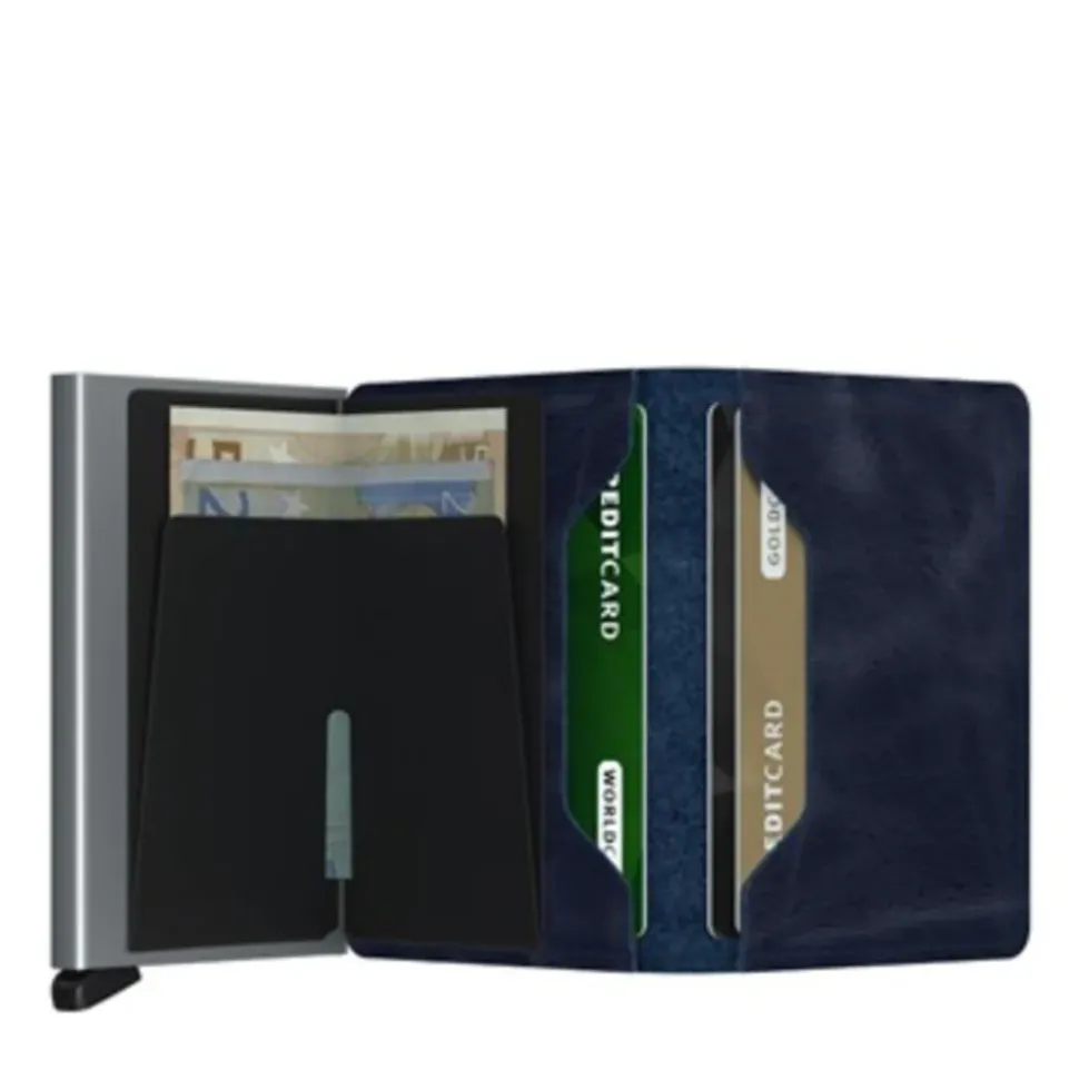 Portafoglio porta carte con sliding system Secrid linea Vintage in pelle blu.