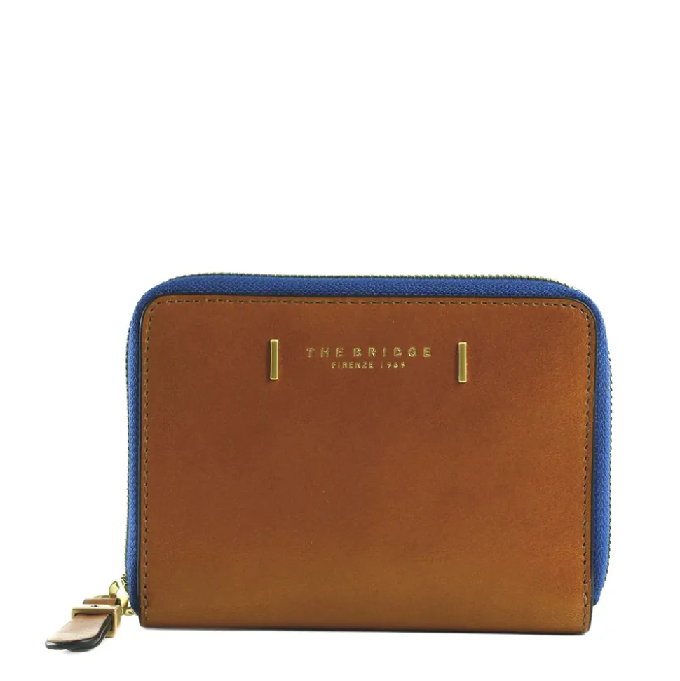 Portafoglio medio zip around The Bridge linea Chiara in pelle cognac.