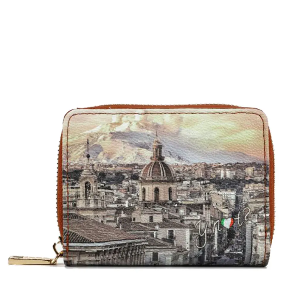 Portafoglio Donna Y Not? doppia apertura, una con chiusura con bottone e l’altra chiusa con zip stampa Etnea modello YES-562.
