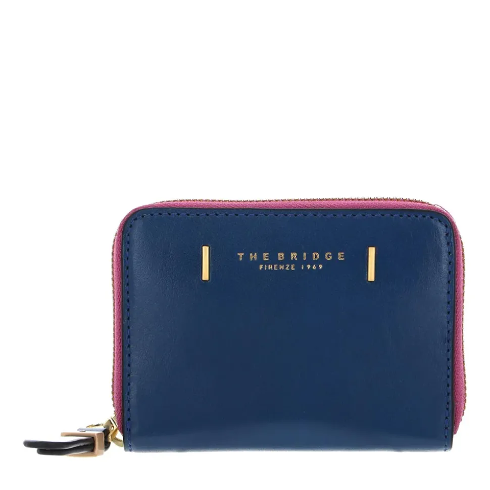 Portafoglio piccolo zip around The Bridge linea Chiara in pelle blu.