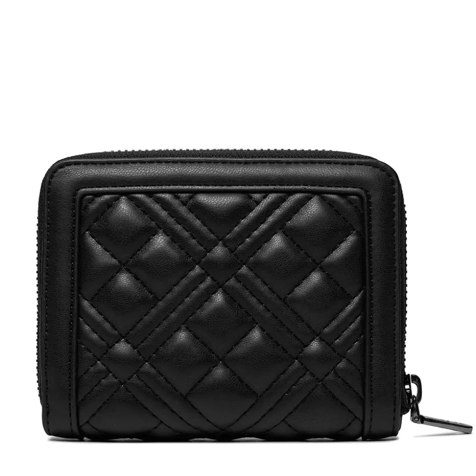 Portafoglio Love Moschino linea Quilted in ecopelle trapuntata nera.