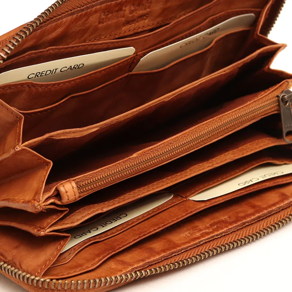Portafoglio in pelle chiuso con zip con ampio spazio per tessere, documenti e banconote. Portamonete interno chiuso con zip.