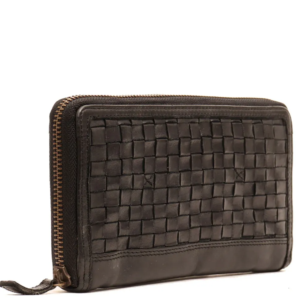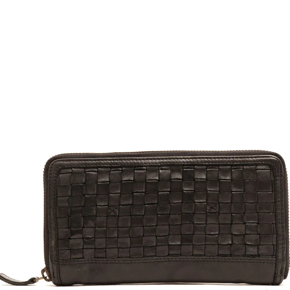 Portafoglio donna zip around Gianni Conti in pelle intrecciata nera.