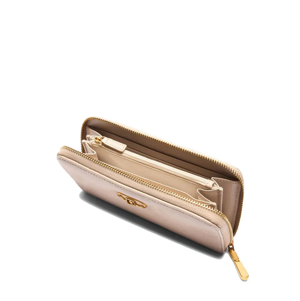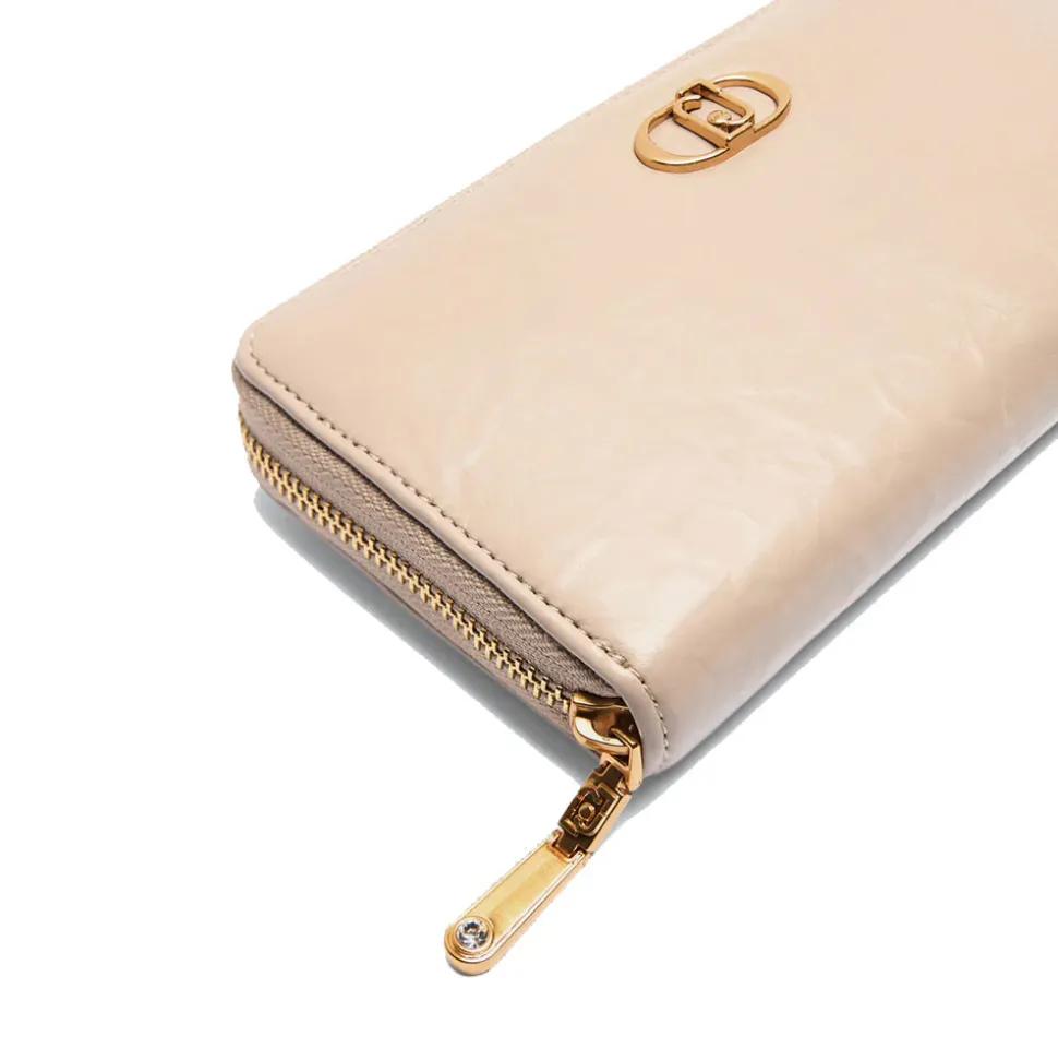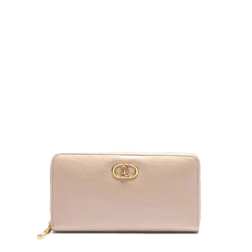 Portafoglio zip around in ecopelle. Lettering LJ in metallo sul davanti. Ampio spazio interno per tessere, documenti e banconote. Portamonete interno con zip.