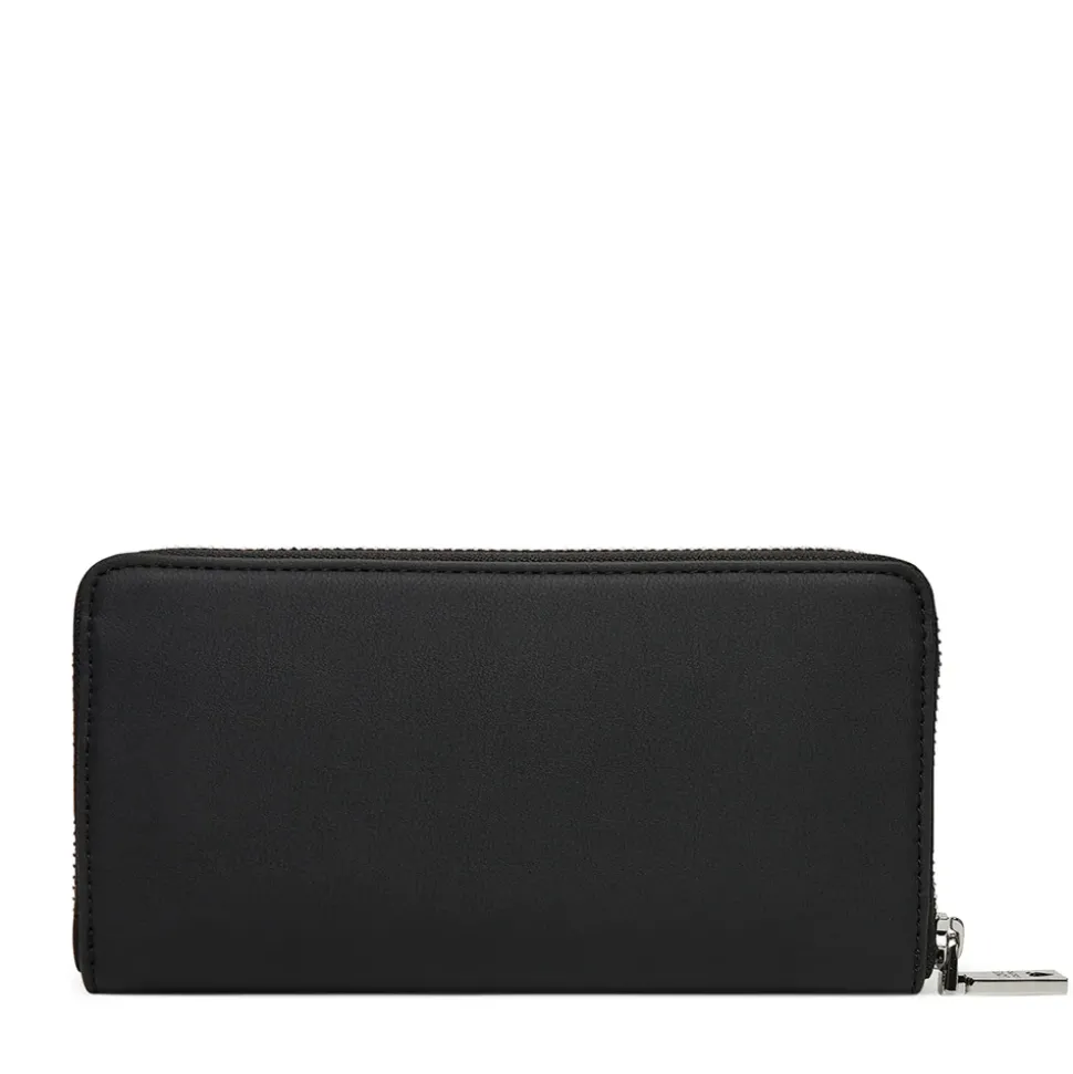 Portafoglio zip around con interno foderato suddiviso in due scomparti da una tasca portamonete. Otto tasche interne a fessura. Logo dorato frontale.