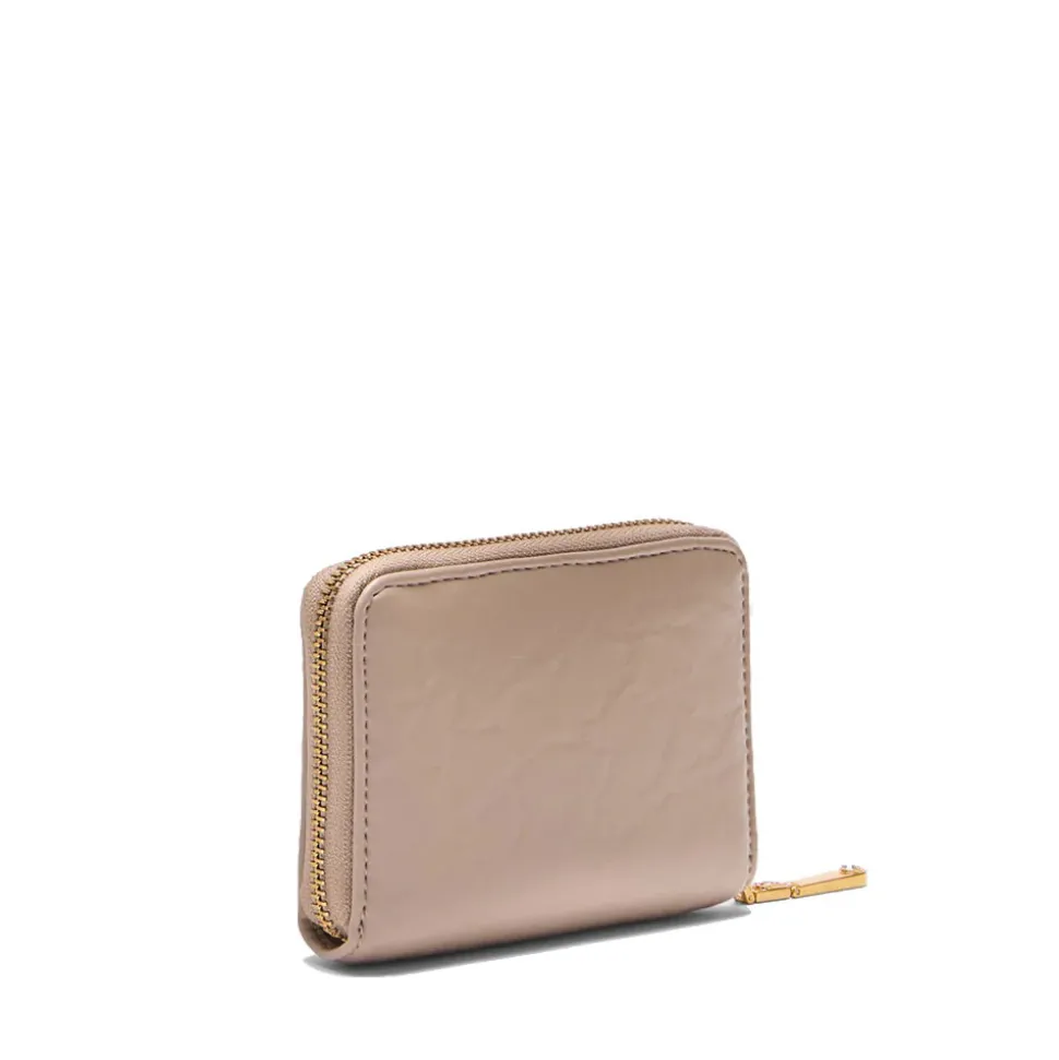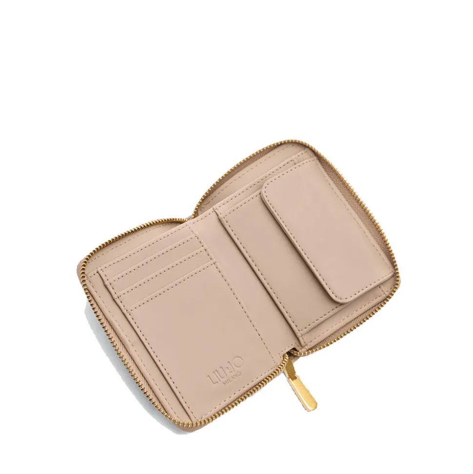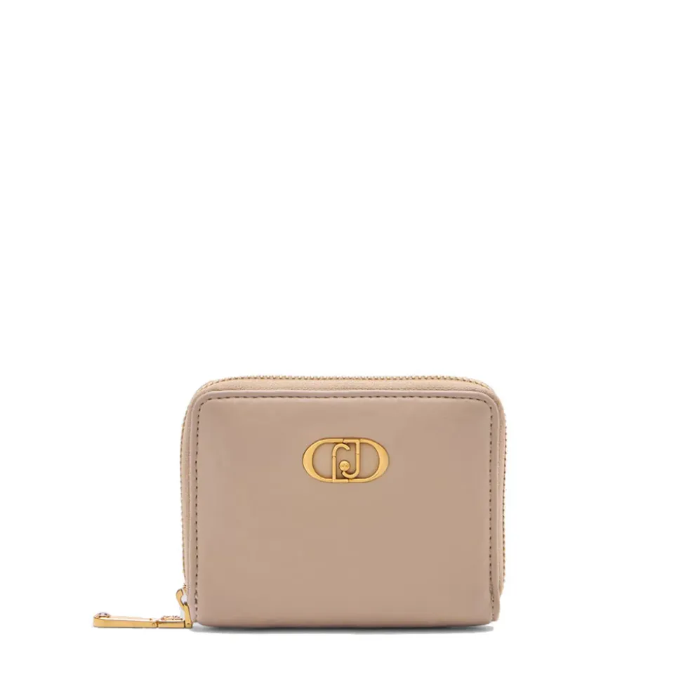 Portafoglio zip around in ecopelle. Lettering LJ in metallo sul davanti. Ampio spazio interno per tessere, documenti e banconote. Portamonete interno con clip.