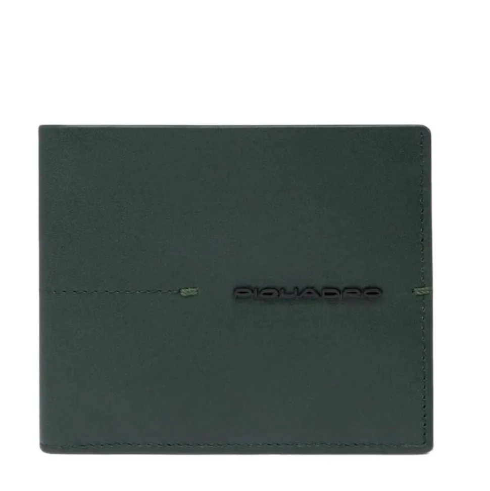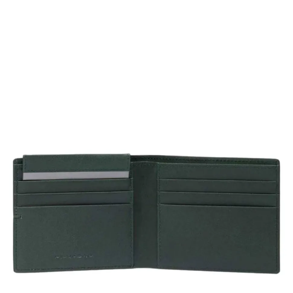 Portafoglio uomo Piquadro in pelle verde linea Kiri con protezione anti-frode RFID e portadocumenti staccabile.