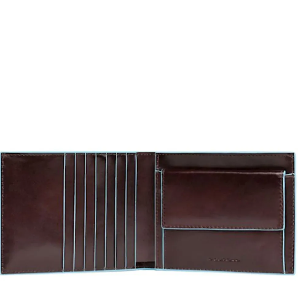 Portafoglio uomo in pelle Piquadro linea Blue Square. 7 fessure per tessere. 2 tasche porta banconote e 2 tasche porta documenti. Sistema RFID protezione carte di credito. Portamonete interno chiuso con clip automatica.