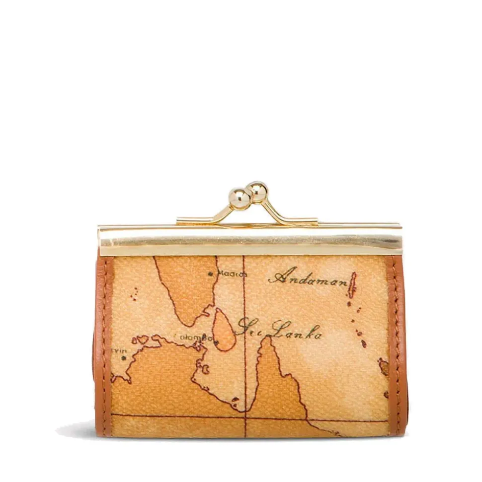 Portamonete in tessuto stampato con cartina geografica Geo Classic, con chiusura grand-mère in metallo dorato e targhetta interna con logo 1AClasse. Un accessorio piccolo e delizioso che conterrà con stile le tue monete e starà anche in una borsa mini.