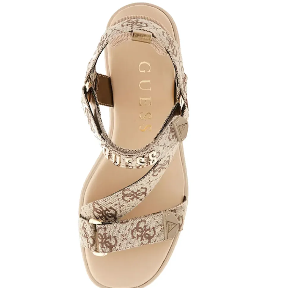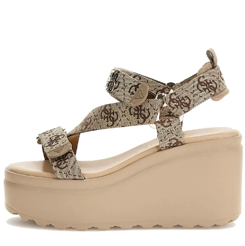 Sandali con zeppa GUESS linea Ocilin in ecopelle logata.