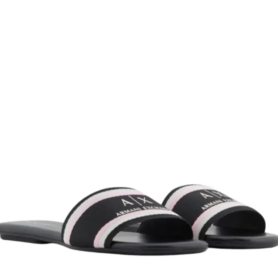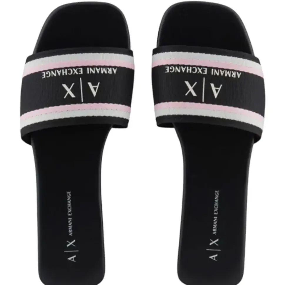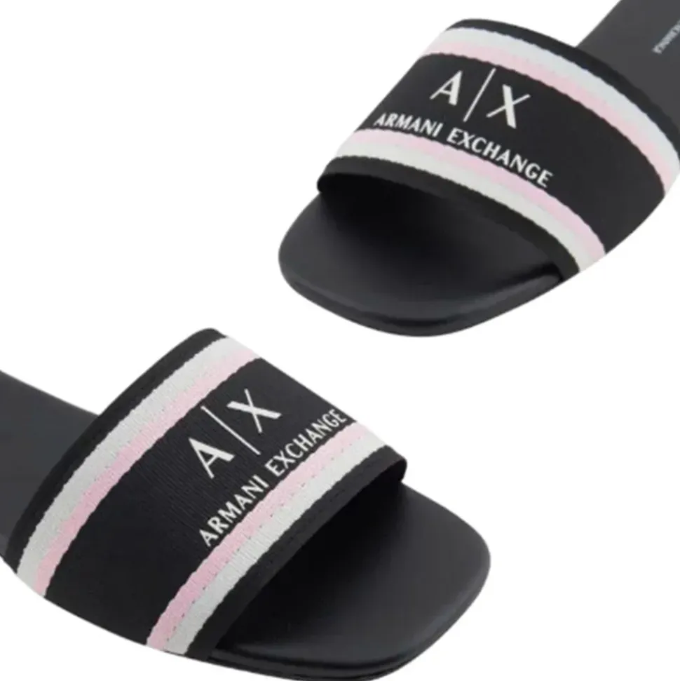 Ciabatte Armani Exchange in ecopelle con fasce frontali logate colore nero.