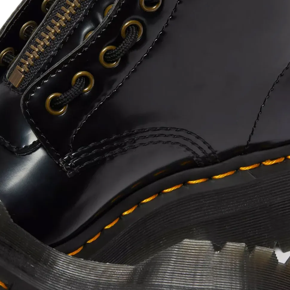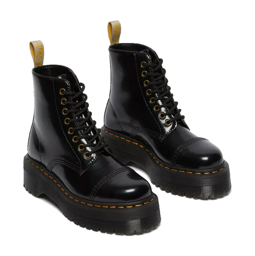 Tu li hai chiesti. E noi ti abbiamo ascoltato. Il nostro stivale Sinclair è stato rielaborato nel materiale sintetico Oxford. Resistenti, senza compromessi e montati su una suola Bex, questi stivali platform vegan sono rifiniti con cuciture gialle e una fettuccia posteriore gialla e bianca che rafforza il nostro inconfondibile DNA.
