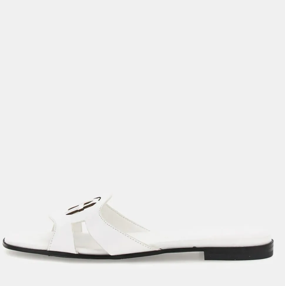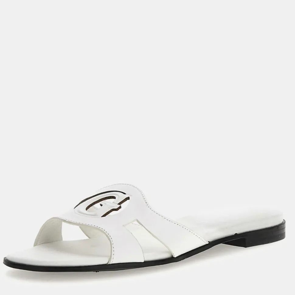 Ciabatte Guess in pelle con fasce frontali intrecciate e logo linea Ciella colore bianco.