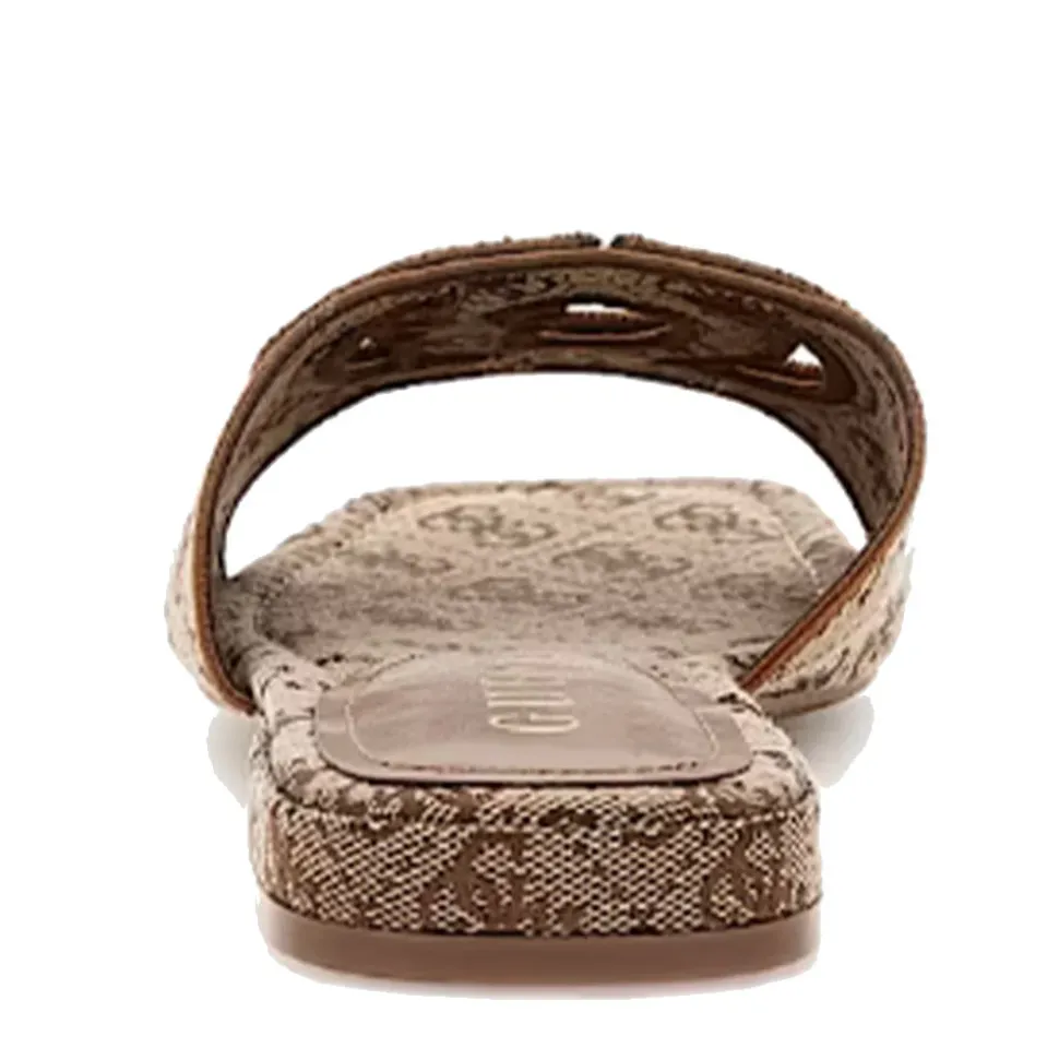 Ciabatte Guess in ecopelle logata con fascia frontale linea Tarishae colore beige/brown.
