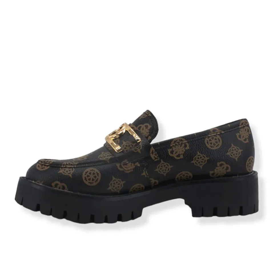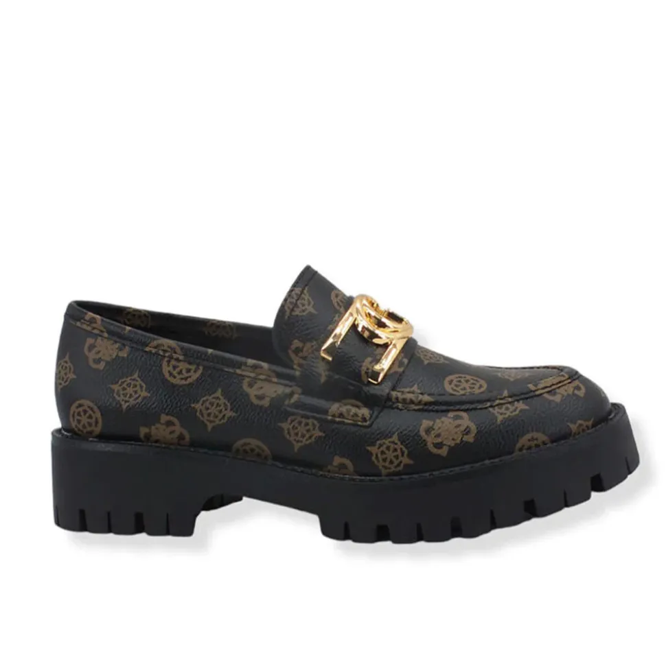 Mocassini in ecopelle logata. Suola platform i gomma altezza 5 cm. Logo dorato frontale.