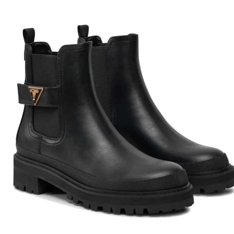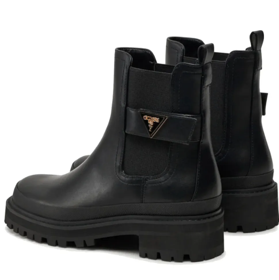 Stivaletto donna realizzato in ecopelle nera. Altezza tacco 4,2 cm. Dettagli in vernice. Triangolo logo laterale. Sottopiede e fodera interna in tessuto e simil pelle. Suola in gomma termoplastica. Inserto stretch laterale. Altezza gambale: 13,5 cm. Circonferenza gambale: 24 cm.